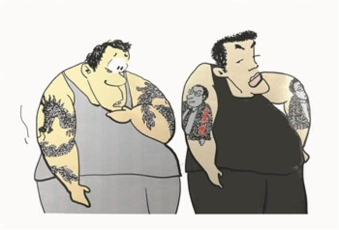 漫画家于昌伟先生的作品《纹个身,壮壮胆》在以上两个功能上,都有不俗表现。这幅漫画不仅给读者带来不同寻常的视觉体验,也为眼下正在深入展开的扫黑除恶专项斗争予以精彩诠释。