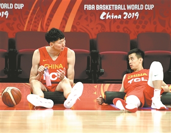 当日,中国队在五棵松体育馆进行训练,备战2019年国际篮联篮球世界杯小组赛第三场同委内瑞拉队的比赛。