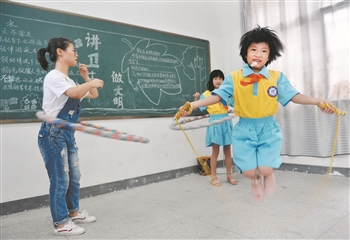 图为张缘在课余时间和同学们玩耍。卓忠伟 摄/视觉中国