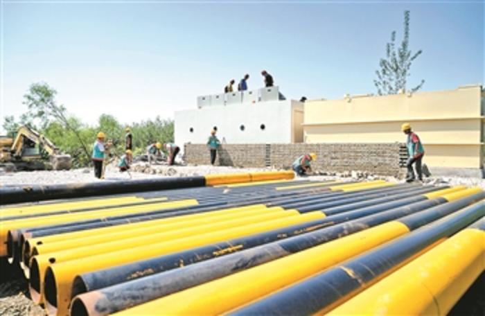 这是8月31日拍摄的白洋淀望月岛污水净化工程施工现场。