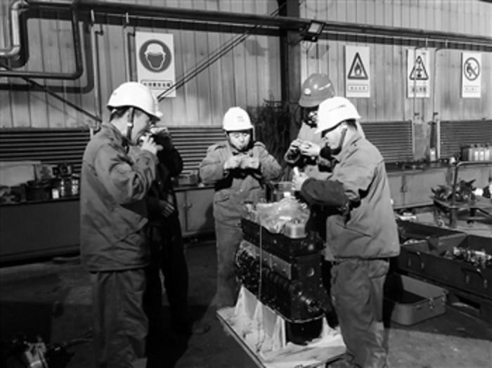 9月9日,中铁十九局矿业公司乌山项目修理厂员工在休息时间品尝月饼。
