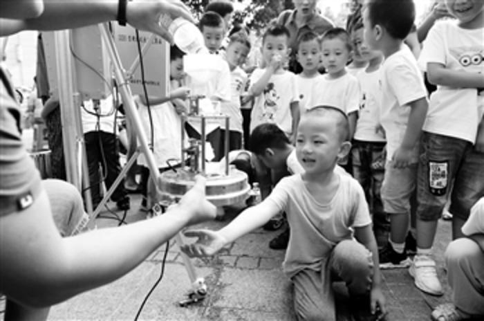 9月10日,蜀山区龙居社区的孩子在体验科普展品。