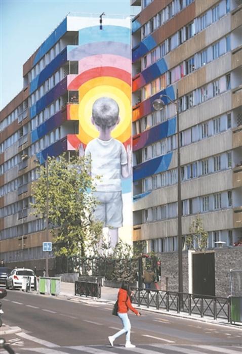 这是9月10日在法国巴黎13区拍摄的一处绘有壁画的建筑物。巴黎13区近十年来邀请数十位艺术家为建筑物外墙作画,颇具规模。