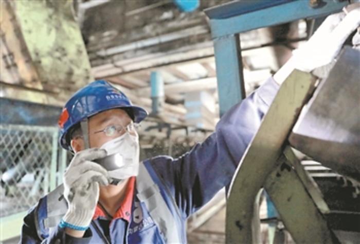 ③ 9月13日,白音华煤业公司输煤皮带检修工王志强在检修皮带。新华社记者 李云平 摄