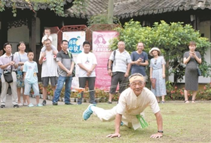 ③ 9月14日,在南京市民俗博物馆,空竹爱好者为游人表演花式空竹。当日,不少市民和游客利用中秋假期来到南京市民俗博物馆参观游览。
