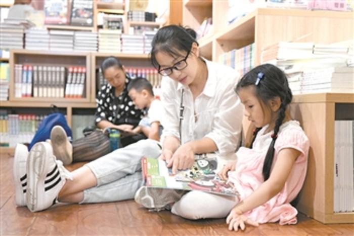 ② 9月14日,小朋友和家长在合肥市三孝口新华书店阅读。中秋假期,安徽省合肥市各大书店吸引了很多读者。 新华社记者 张端 摄