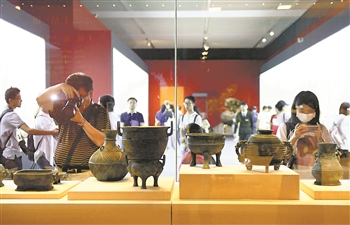 9月17日,观众在展柜前观看曾伯克父青铜组器。