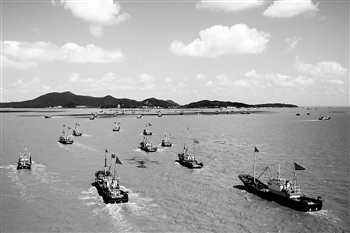 9月16日,浙江舟山,千余艘渔船浩浩荡荡驶过朱家尖跨海大桥,奔赴东海渔场,开始捕捞作业。