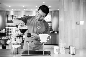 一年来,袁幸福不仅在空闲时间自己喝咖啡、冲咖啡,也会在网上深度学习、研究关于咖啡的知识。他认为,只有当自己对咖啡越来越了解,才能和顾客之间产生一种共鸣。
