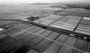 9月19日无人机拍摄的天津长芦汉沽盐场盐池。