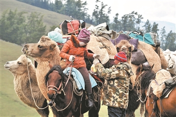 每年9月到10月上旬,为了躲避严寒,确保牲畜有足够的食物和水源,居住在新疆阿勒泰地区的哈萨克族牧民要赶在降雪之前将牲畜赶往平原地带,这是他们每年必须进行的秋季“生命大迁徙”,也被称为“转场”。转场是一种随着季节变化,不断将牲畜赶往草料丰富地区的循环轮牧方式,转场通常在每年的夏季和秋季进行,但在某些气候和植被条件差异较大的地方,也有每年进行4次转场的情况。