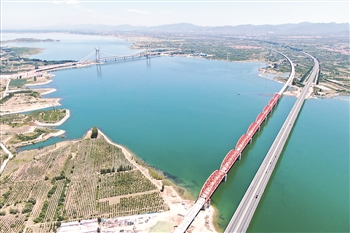 2017年11月11日,京张高铁官厅水库特大桥主体工程完工,全长9077米,是国内首例适用于350公里时速有砟轨道高速铁路的钢桁梁铁路桥。本报记者 吴凡/摄