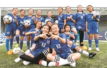 来自甘肃省兰州市榆中县中连川乡中连川小学的小姑娘赵璐婷热爱足球,从小就利用家里所有可能的条件踢球,家里的羊羔曾是她唯一的“陪练”。中连川小学是一所典型的乡村寄宿制学校,在经历了七年的足球特色教育改革后,如今已经培养了10余名乡村孩子进入广州恒大足球学校等专业足球训练机构。甘肃省榆中县中连川小学的学生赵璐婷(后排左一)和马梓妍(后排左二)在英国拉夫堡参加训练后合影(8月20日摄)。