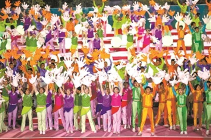 9月29日晚,北京昌平的一处训练基地,由武术学校和北京市3个区县的2502名群众演员完成了首都国庆联欢活动最后一次训练。据了解,国庆联欢活动将持续90分钟,由主题表演、中心联欢表演、群众联欢、烟花表演4个功能表演区组成。