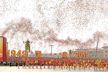 伴随着数万只彩色气球在天安门广场升空,庆祝中华人民共和国成立70周年大会圆满结束。