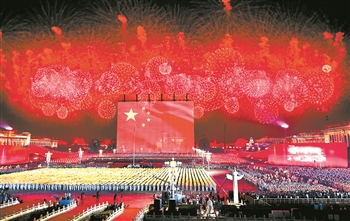 仰望国旗,思绪万千。70年前,天安门城楼上,划破中华民族漫漫长夜的声音仍在耳边回响;今天,一个迎来从站起来、富起来到强起来的中国,又怎能不令人心潮澎湃?!