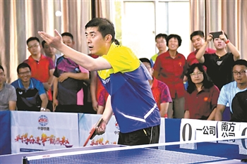 日前,中国铁建电气化局第8届“铁建电化杯”职工乒乓球赛在河北保定市举办。3天的比赛中,来自全国各地16家企业代表队的190名施工一线职工乒乓球爱好者同台竞技。(曹筱璐 单锡海 郑传海 摄)