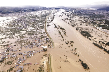 据日本共同社13日统计,“海贝思”过境导致日本多处河流泛滥,目前有21条河流决堤24处,另有77条河流发生漫堤现象。其中,流经长野县的千曲川决堤,造成长野市和千曲市大范围被淹,大片住宅区被洪水包围,有的房屋甚至被淹至2层。