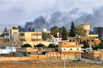 10月13日,叙利亚北部边境城镇泰勒艾卜耶德。土耳其国防部长阿卡尔14日对媒体表示,土武装部队已控制叙北部边境城镇泰勒艾卜耶德和拉斯艾因。新华社发(穆斯塔法·卡亚摄)