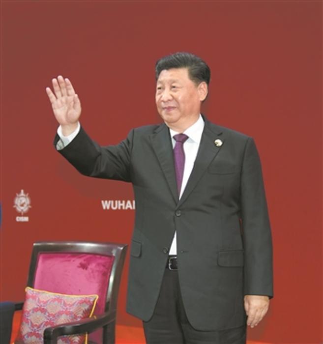 10月18日,中共中央总书记、国家主席、中央军委主席习近平在武汉出席第七届世界军人运动会开幕式并宣布运动会开幕。