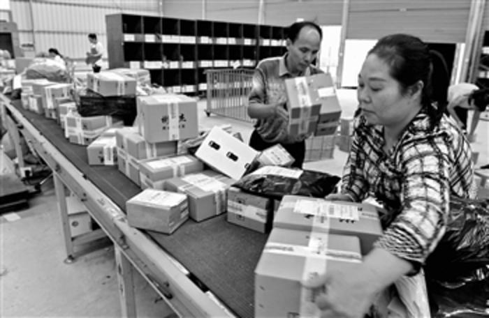 10月18日,建瓯市电商产业园快递分拨中心工作人员在分拣快递。