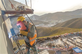 10月15日,谷瑞旺正在国家跳台滑雪中心的建设工地上进行高空焊接作业。由于工期紧、任务重,他每天要工作近10个小时。