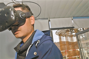 在国家跳台滑雪中心工地附近,承建方搭建了一个VR体验室,参观者可以在这里直观地感受到跳台滑雪的魅力。