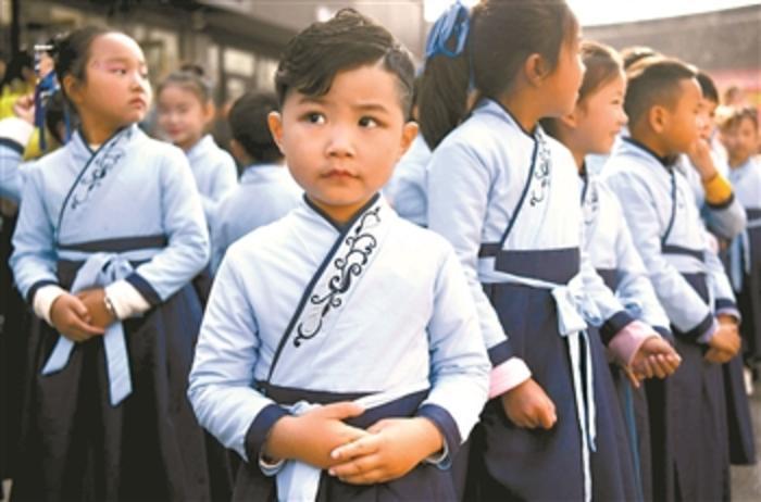 10月19日,少儿在汉服嘉年华方阵巡游中。连日来,2019中国(徐州)汉文化旅游节举行汉服嘉年华活动,为广大市民及汉服爱好者带来不一样的汉文化体验。身着各式汉服的市民演员随处可见,成为街头一道亮丽的风景。