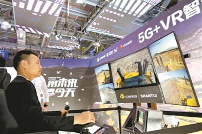 2019世界VR产业大会10月19日至21日在江西省南昌市举行,此次大会以“VR让世界更精彩——VR+5G开启感知新时代”为主题,在VR/AR产品和应用展览会上,大批基于“VR+5G”技术的应用成果为观众带来了全新的体验。图为工作人员为观众演示一款智慧采矿车的操作。