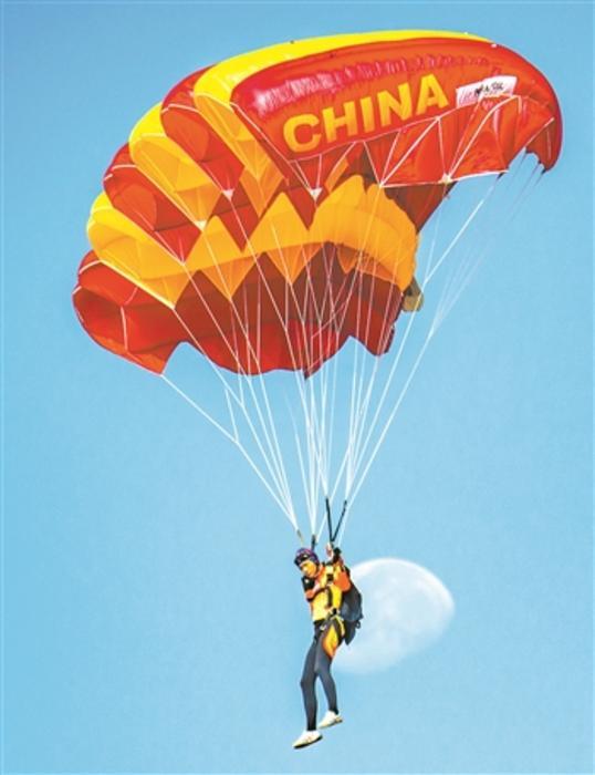 10月19日,武汉汉南通用机场,晴空无云,微风拂面,参加定点跳伞比赛的各国运动员,分组陆续从千米高空纵身跳下。随着运动员一个个在指定区域安全着陆,围栏外的观众不时响起掌声。视觉中国 供图