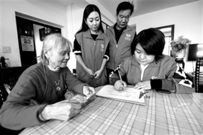 10月23日,雉城街道所前社区的党员志愿者上门为72岁的吴阿宝老人(左一)记录她的“微心愿”。