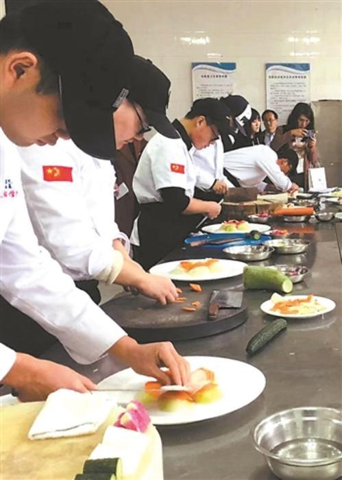 青岛酒店管理职业技术学院的学生正在进行基础课程的学习。张子谕 摄