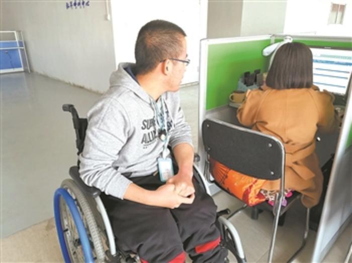 因脊柱裂而需终生坐轮椅的林壮是徐金华口中“特别努力”的人之一。自初中时因身体原因辍学,林壮极少出家门,母亲要专门照顾他,家里负担很重。做了电话客服后,林壮不仅自己有了收入有了朋友,也“解放”了母亲,让家庭状况得到很大改善。