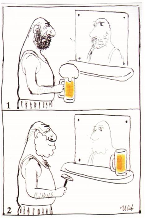 在人们印象中,啤酒只是美味佳肴不可缺少的一部分。可是这位先生却利用其泡沫当成剃须的润滑剂。是物尽其用?还是新开发?