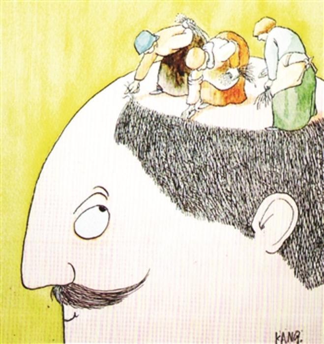 画面上呈现的是一片繁忙的“栽秧”场面,作者借用名画《拾麦穗》的情景——为脱发者补植上“缺遗”。这正是:爱美之心人皆有之。【韩国】康泰永