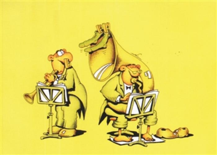两位吹奏者正在排练,忽然阵阵异味令人难以忍受。原来是萨克号手将扒下来的袜子晾在“顺风口”。哇!舞台上竟有如此不文明行为。