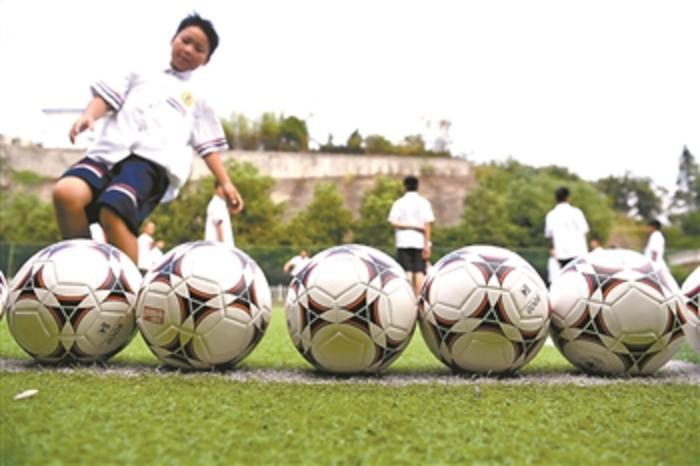 金寨县希望小学学生在足球课上训练。新华社记者 刘军喜 摄