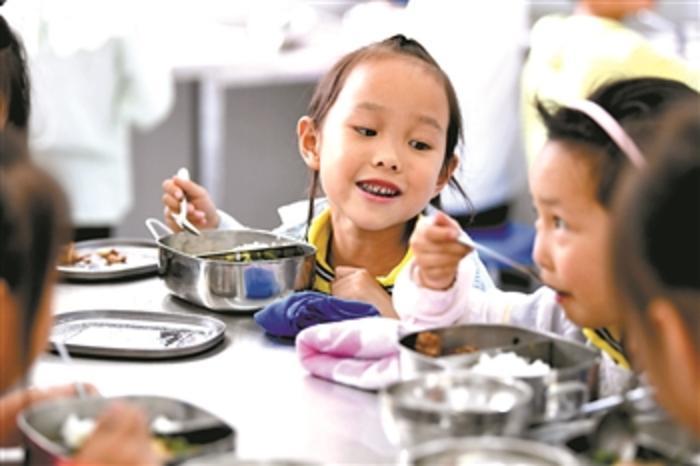 金寨县希望小学学生在吃午餐。新华社记者 刘军喜 摄