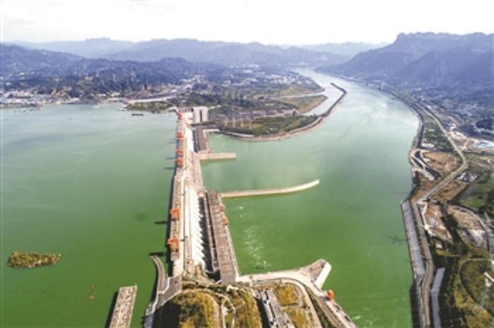 10月28日在湖北省宜昌市秭归县拍摄的三峡大坝(无人机拍摄)。