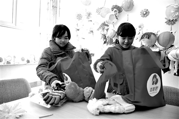 10月30日,隆化县汤头沟中心小学学生整理收到的“微心愿”礼包。