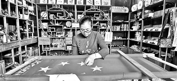 为了早点实现心愿,她每天在工作台前一坐就是十几个小时,经过加班加点,一面长1.92米、宽1.28米的五星红旗终于绣制完成。