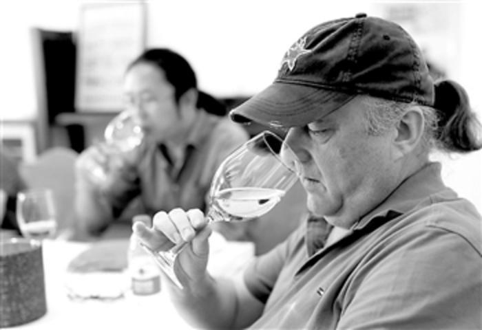 法国酿酒师布鲁诺从橡木桶里抽取出已经发酵完的红酒,缓缓倒入酒杯,一抹红色柔滑如绸,邀请记者品尝他亲手酿制的美酒。红酒略醒几分,与空气中的氧气亲密接触,充分氧化后香味便愈发浓郁。