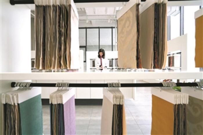 11月6日,游客在沧州明珠国际服装生态新城“面料图书馆”内游览。