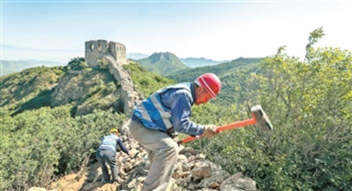 北京昌平,工人正在修复长城。本报记者 王伟伟 摄