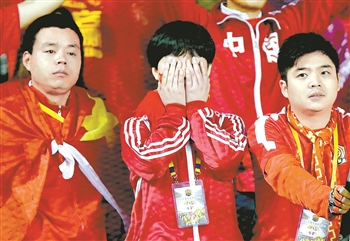 2018世预赛亚洲区12强赛,中国男足主场0比1输给叙利亚,现场球迷难掩失望之情。