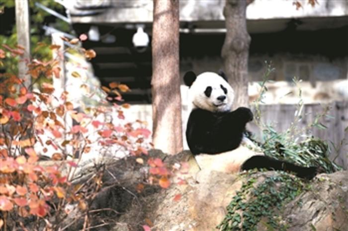11月11日,在美国华盛顿,中国旅美雄性大熊猫“贝贝”在美国国家动物园玩耍。(上图)