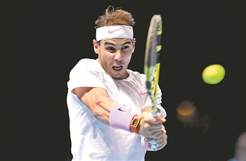 11月11日,西班牙选手纳达尔在比赛中回球。