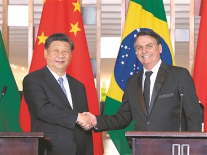 习近平指出,上个月,博索纳罗总统成功对中国进行国事访问,我们达成的共识正在得到积极落实。在刚刚结束的第二届中国国际进口博览会上,巴西参展方的成交额比上届增长3.6倍,成绩喜人。中巴作为东西半球最大的新兴市场国家,拥有广泛共同利益。我们看好巴西发展前景,对中巴合作充满信心,愿同巴西分享发展经验,共享发展成果,实现共同繁荣。我愿同你一道,把握好、引领好中巴关系发展方向。
