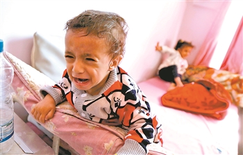 11月13日,在也门萨那,感染疟疾的儿童在医院接受治疗。新华社发(穆罕默德摄)
