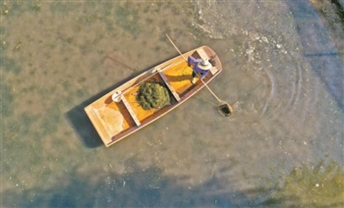 11月19日,江西省吉安市永丰县七都乡牛山村,河长正在进行水体保洁。刘浩军 摄/视觉中国